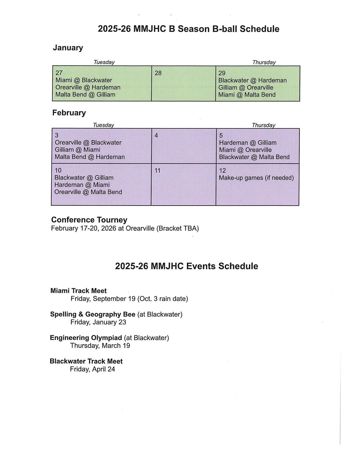 Sports offered grades 3-8